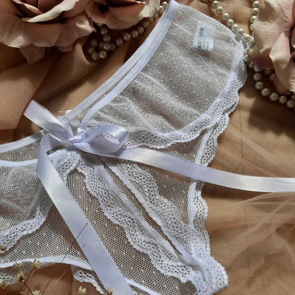Calcinha Caleçon Laço Sensual Em Tule E Renda